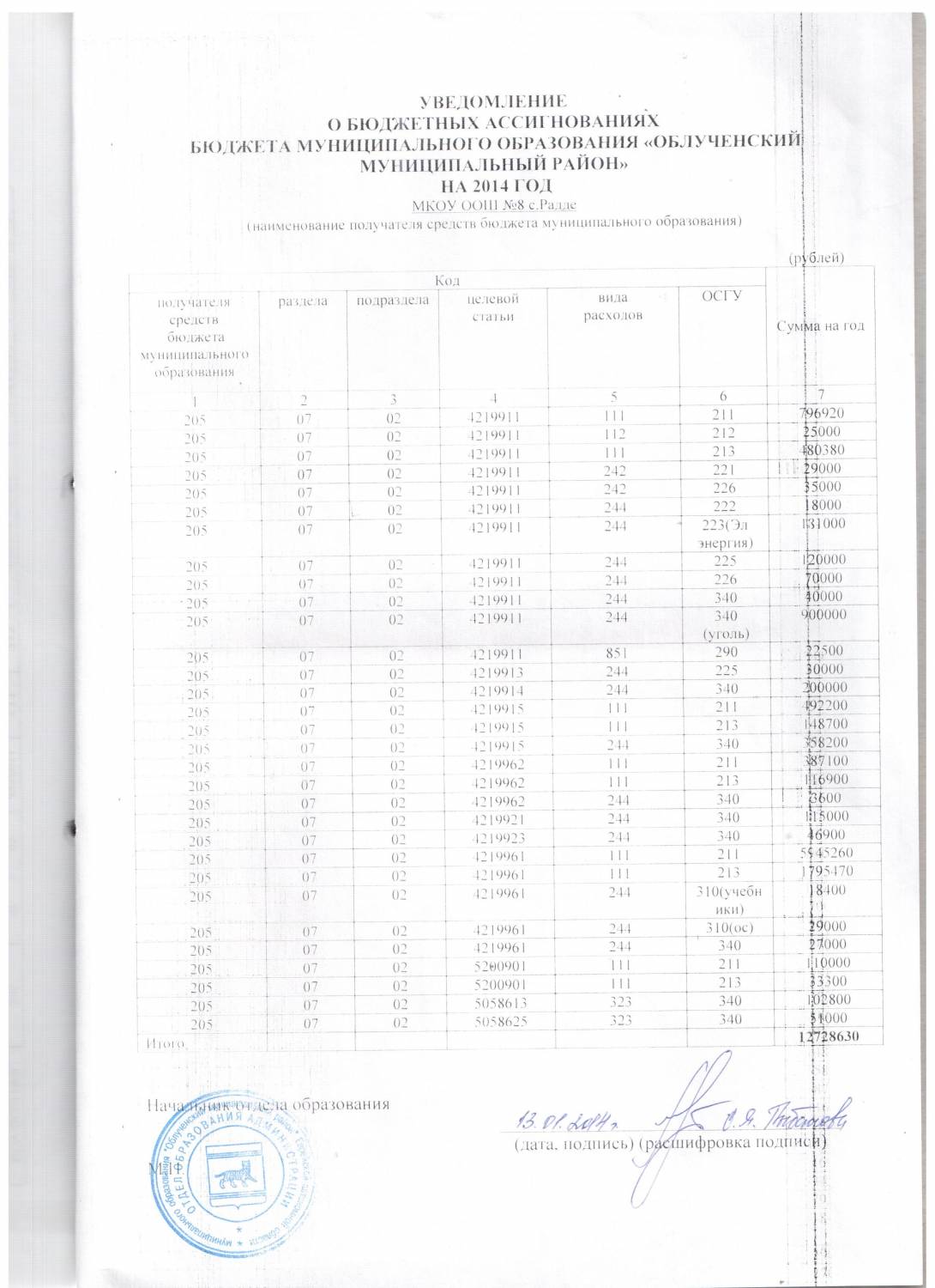 Смета расходов на 2014 год
